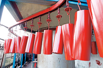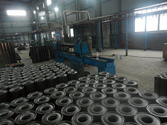檢測合格的托輥經(jīng)除灰、除油等表面處理后,進(jìn)入由懸掛鏈?zhǔn)捷斎霗C(jī),靜電發(fā)生裝置,噴漆通道。干燥設(shè)備構(gòu)成的靜電噴漆干燥流水線,完成表面涂裝。寶科機(jī)械托輥使用的涂料中添加有防銹成分,干燥后所形成的漆膜堅硬。耐水,耐油,耐酸,附著力強(qiáng),美觀精致,適用各種工況。