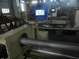 檢查通過的鋼管被送入自動管加工機(jī)。管材切斷后,對鏜雙側(cè)止口,高壓氣體清掃管內(nèi)鐵屑和雜質(zhì)。